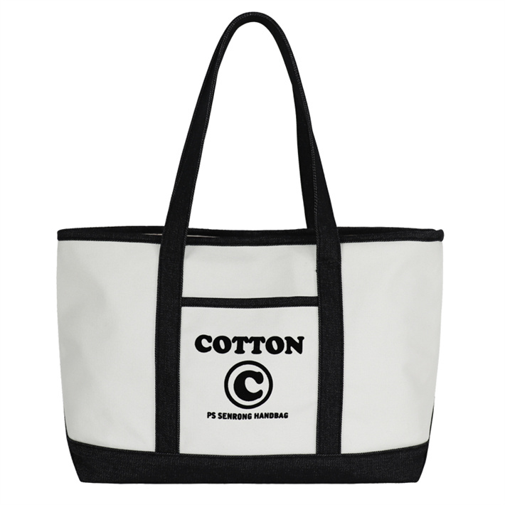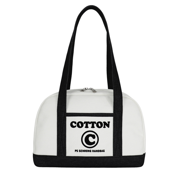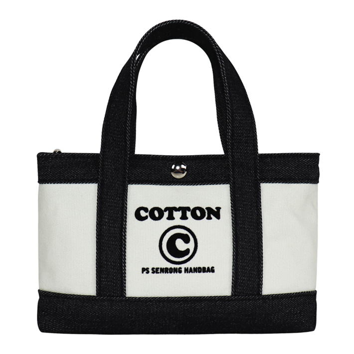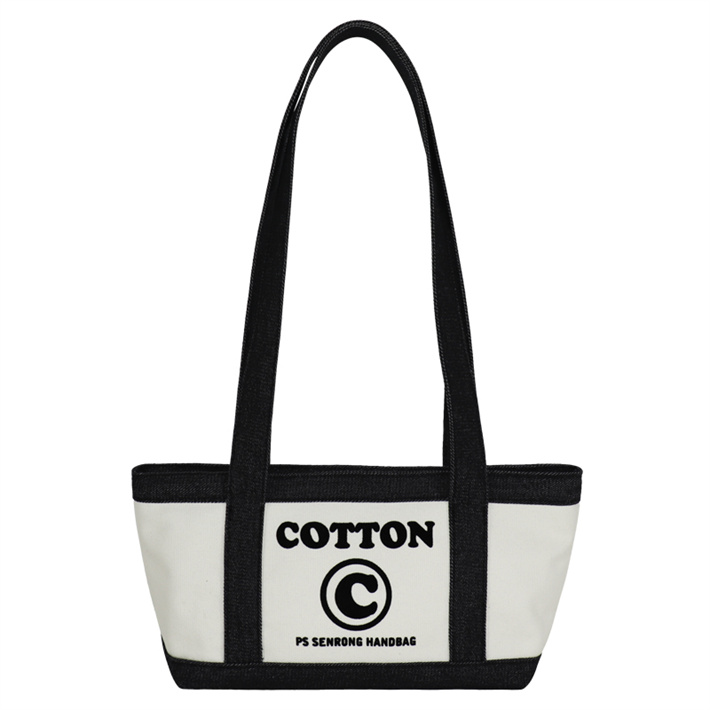 日系簡約帆布包定制 帆植絨拼接單肩手提包寵物隱蔽包牛仔購物袋