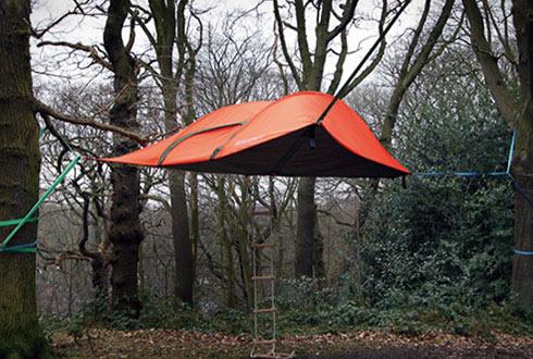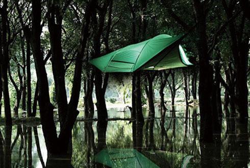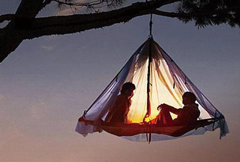看看這款帳篷,給人一種懸浮在空中的錯覺。該帳篷通過高強度的繩索吊在四周的樹桿上,乍一看起來像吊床,既安全又保證了隱私。此外,這款帳篷還附加了一個繩梯,這樣的話你在晚上仍然可以順暢地爬進帳篷。