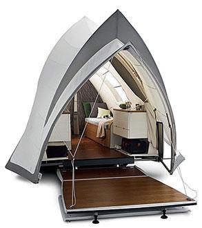 近年來,帳篷設計潮流越發趨向綠色環保。這款帳篷設計前衛,裝有WiFi鏈接裝置、太陽能電池板和照明系統。