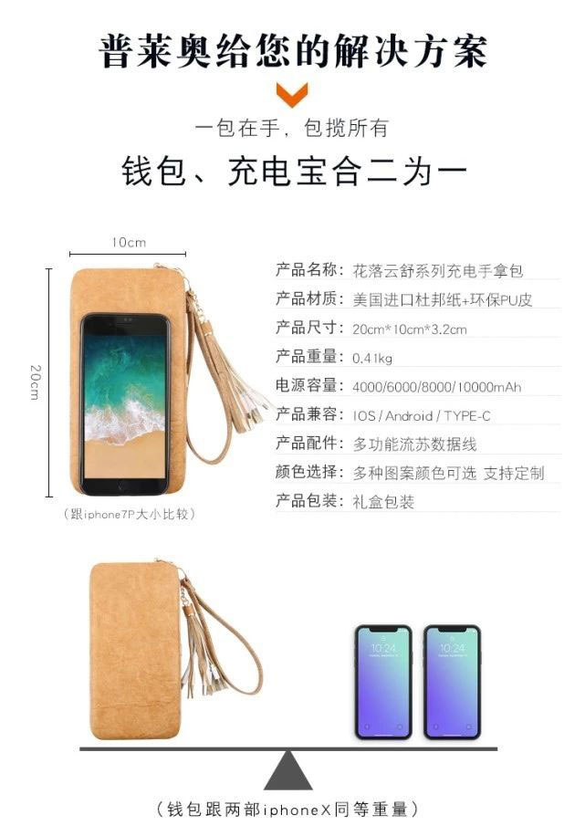 這款充電錢包比較適合女士使用,而其娛樂功能和充電功能成為它的內核所在,并且在還可以做成無線充電功能。